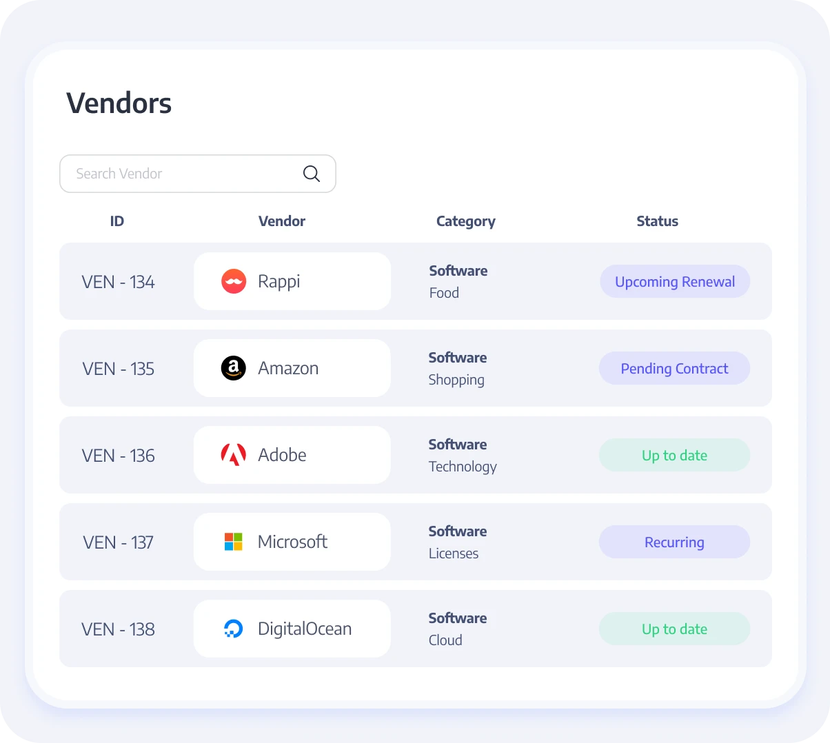 Finnecto consolidates all contractual documentation in a single location, offering full visibility and seamless control over your vendor agreements