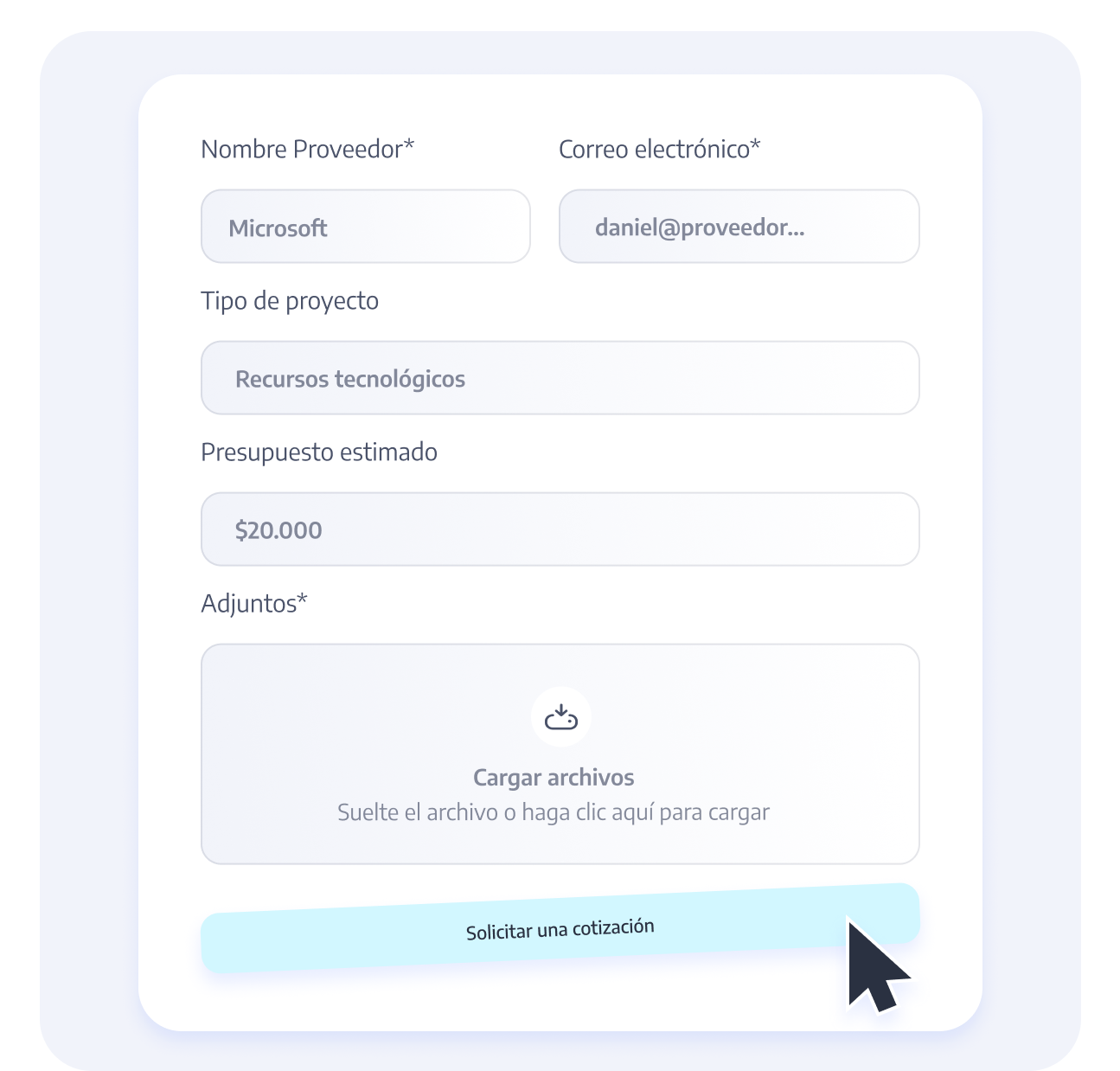 Personaliza tus formularios de creación y actualización de proveedores para que puedan completar todos los requerimientos de compliance y auditoria de forma ágil y amigable