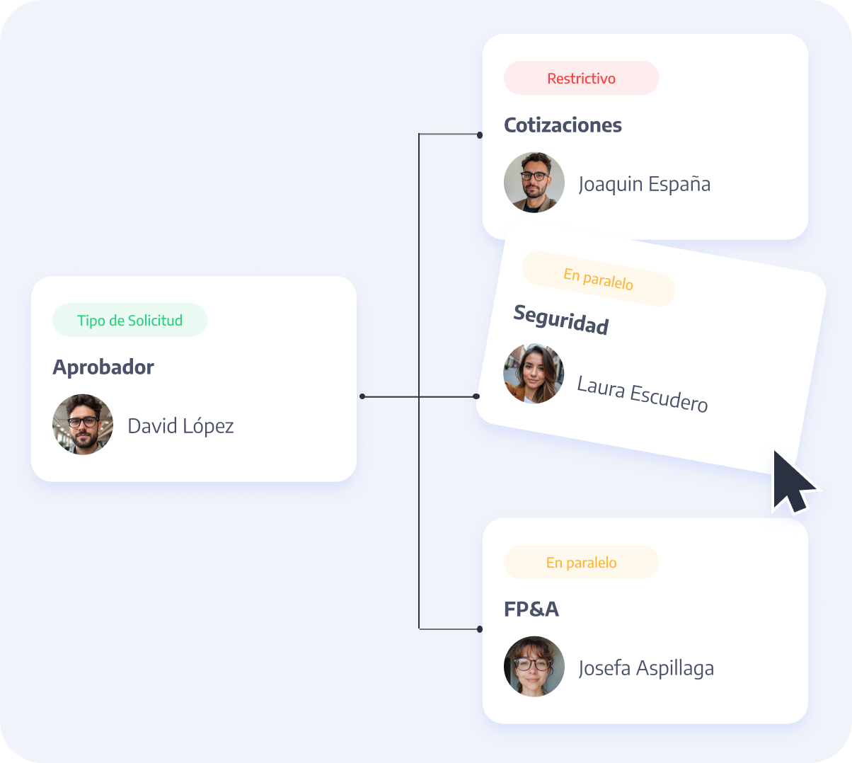 Finnecto conecta automáticamente a los equipos y personas clave en cada etapa del proceso, acelerando las aprobaciones y acciones, reforzando el control y la seguridad